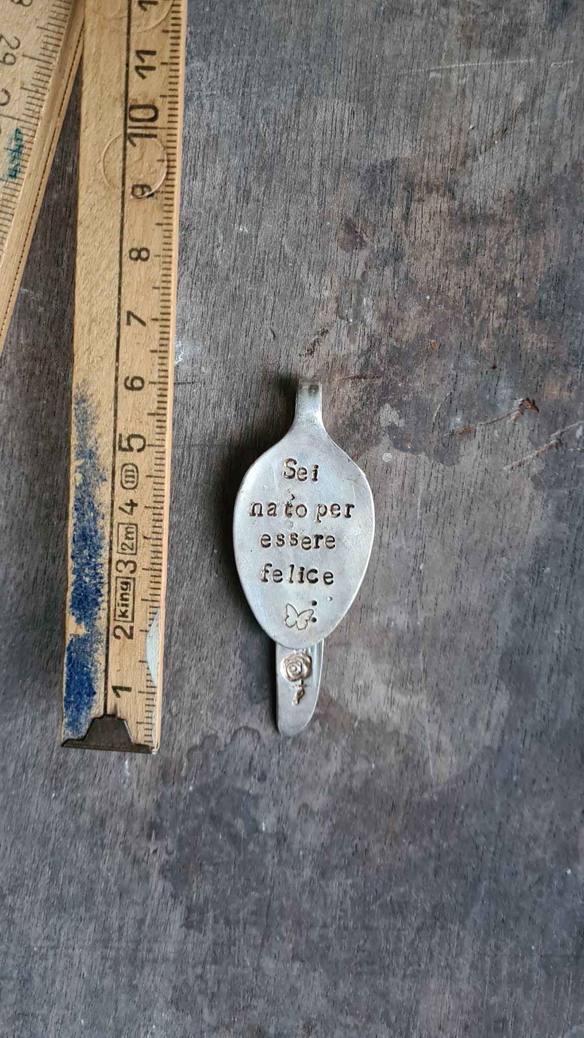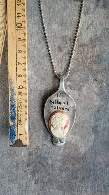 I cucchiaini da caffè o da tè che vi presento ora sono vintage, che schiaccio a martellate e incido. Sono cucchiaini che possono essere utilizzati sia come ciondoli che come portachiavi. (ditemi voi se volete la catenina o l'anello)